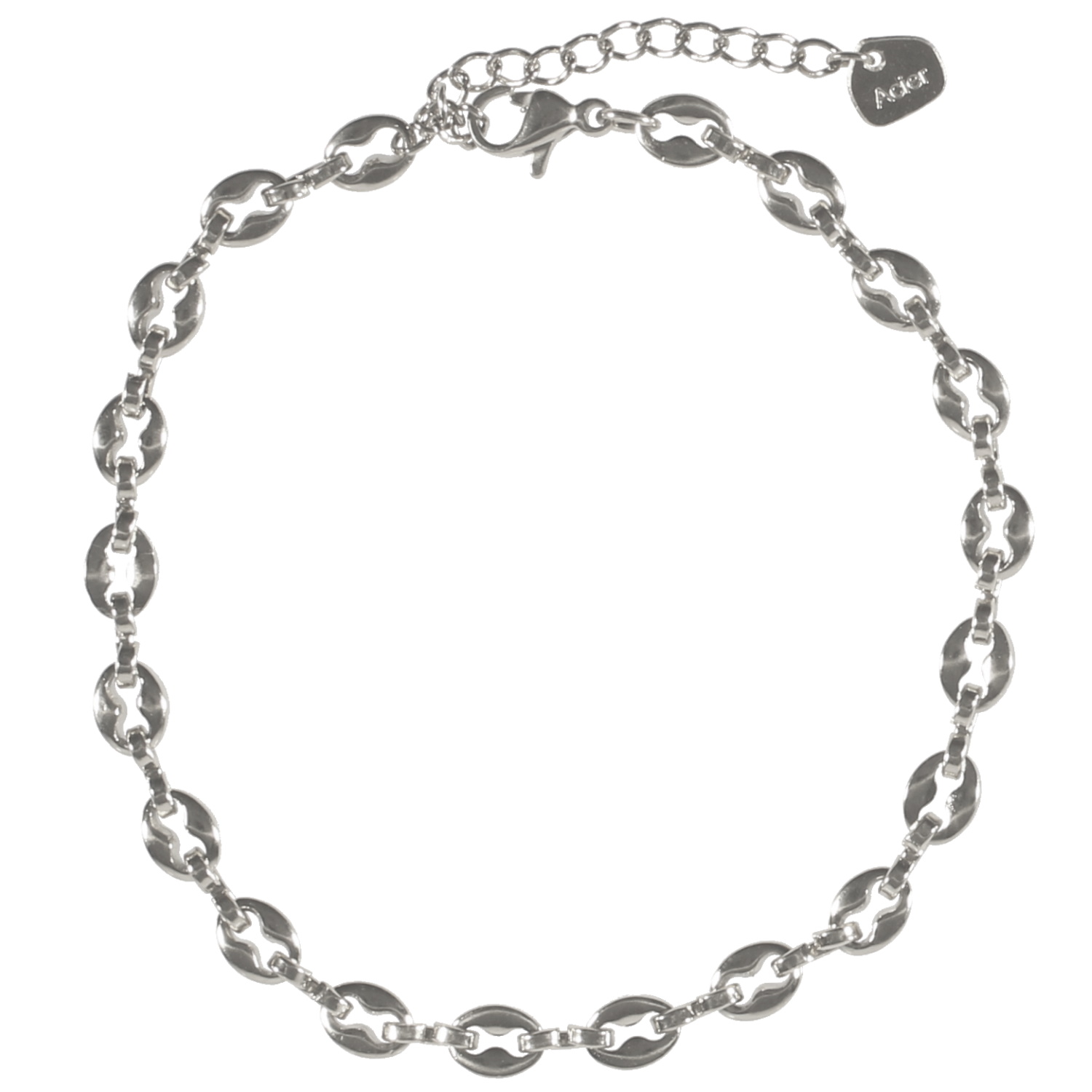 Description Bracelet composé d'une chaîne maille grain de café en acier argenté. Fermoir mousqueton avec 3 cm de rallonge. Cliquez sur une matière, un thème, une couleur ou une collection pour voir tous les articles associés.