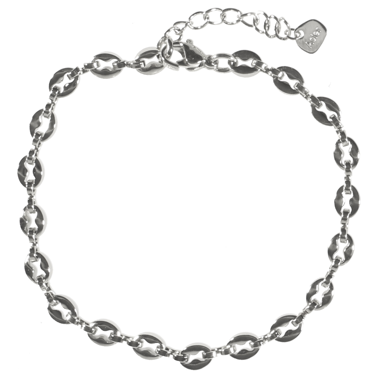 Description Bracelet en maille graine de café en acier argenté. Fermoir mousqueton avec 2.5 cm de rallonge. Cliquez sur une matière, un thème, une couleur ou une collection pour voir tous les articles associés.