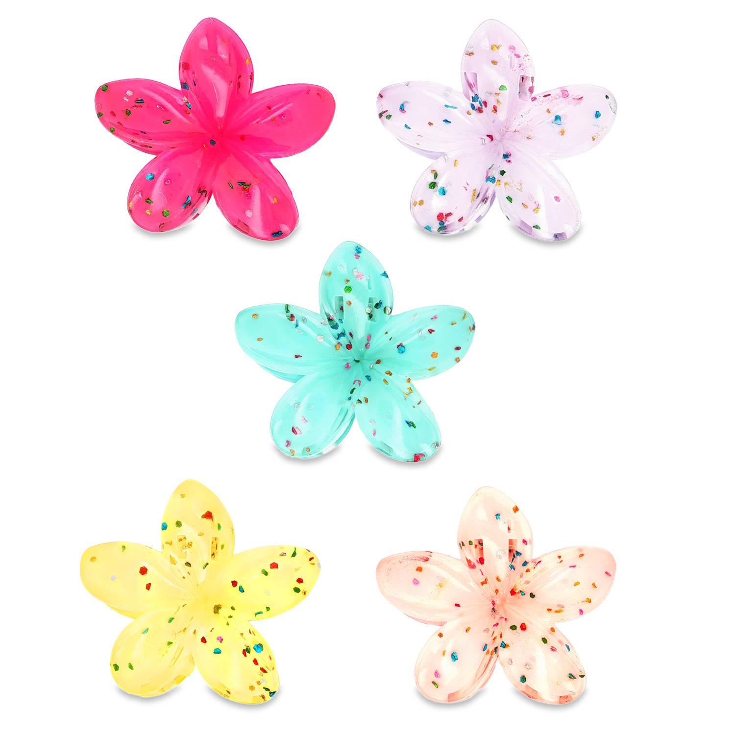 Description Pince crabe à cheveux en forme de fleurs de frangipanier, affichant un style à la fois tropical et festif. L'intérieur de la matière est parsemé de confettis colorés et de paillettes multi-formes, créant un effet fun et dynamique qui capte la lumière. 5 coloris différents. Vendu à l'unité. Votre préférence en commentaire. Cliquez sur une matière, un thème, une couleur ou une collection pour voir tous les articles associés.