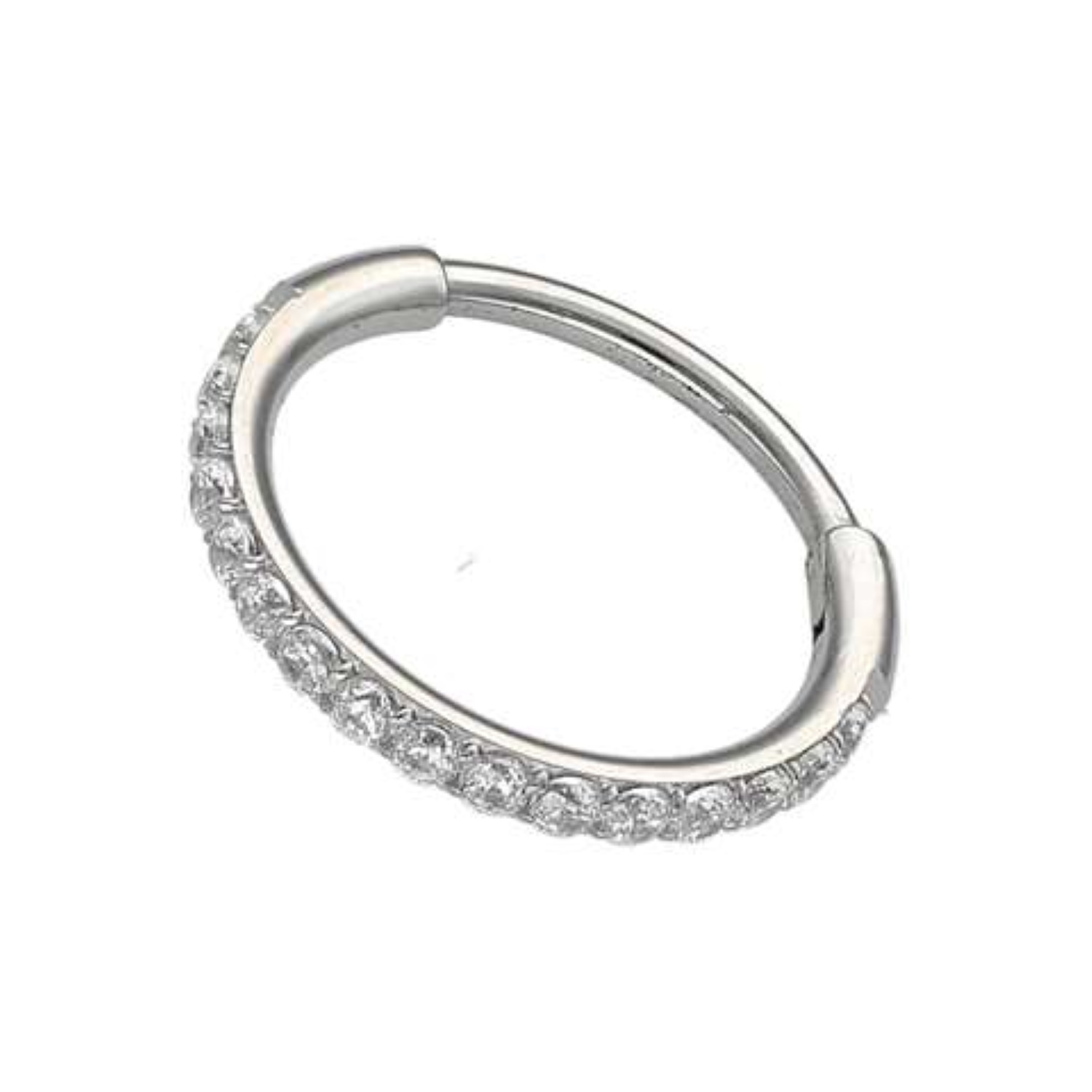 Piercing pour nez ou oreille en acier chirurgical argenté serti d'oxydes de zirconium blancs.