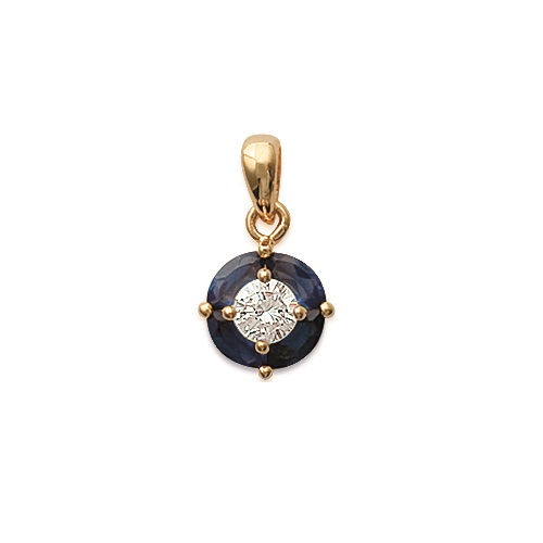 Pendentif en plaqué or 18 carats avec un oxyde de zirconium entouré de pierres synthétiques bleues.