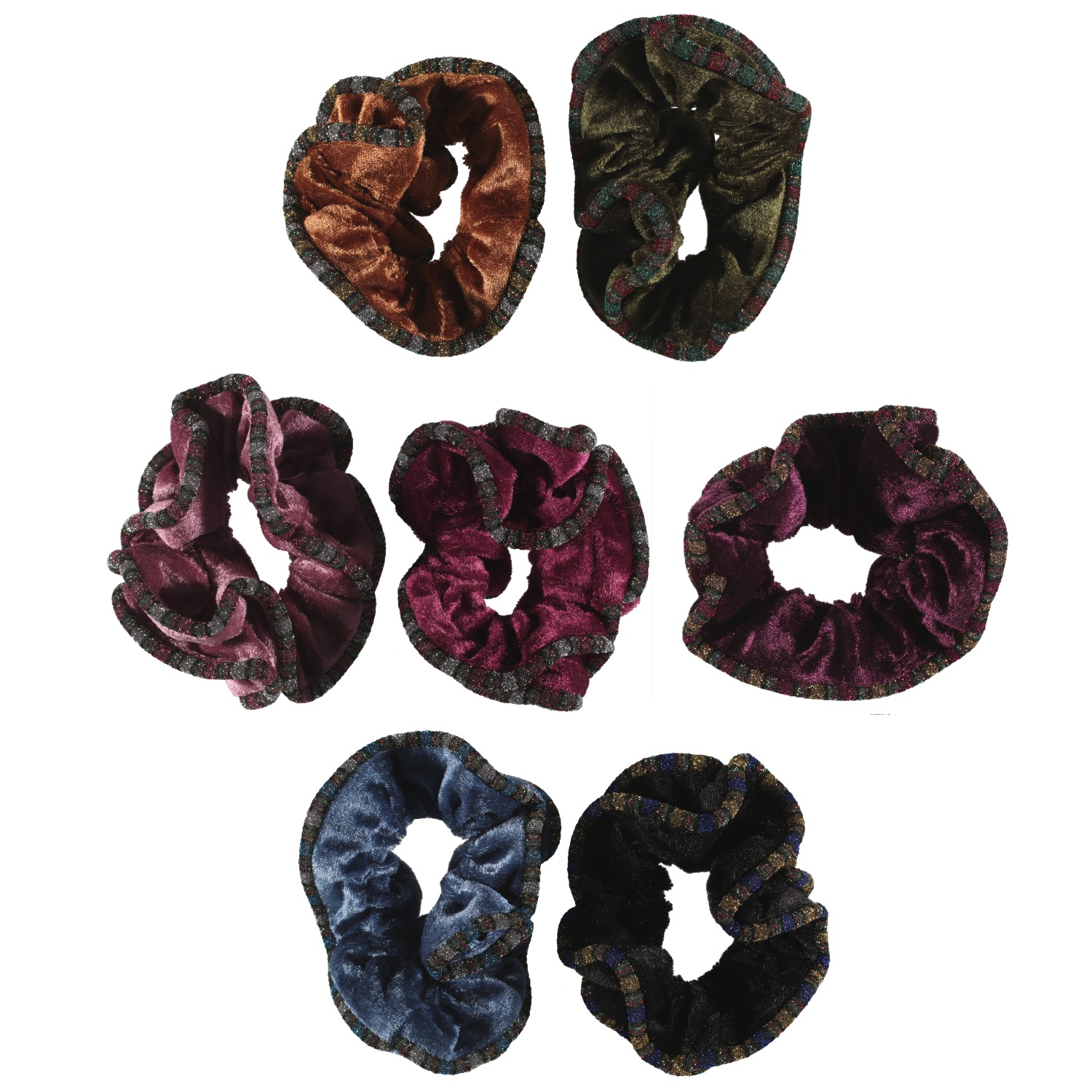 Description Chouchou pour cheveux en velours et textile brillant. 7 coloris différents. Cliquez sur une matière, un thème, une couleur ou une collection pour voir tous les articles associés.