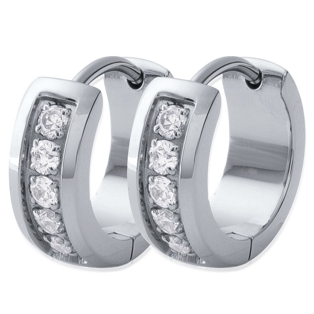 Description Boucles d'oreilles créoles en acier et oxyde de zirconium. Cliquez sur une matière, un thème, une couleur ou une collection pour voir tous les articles associés.