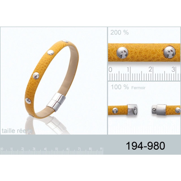 Description Bracelet en acier et cuir jaune. Longueur 19 cm [Guide des tailles] Largeur 8 mm Matière(s) Acier , Cuir . L'acier utilisé dans la bijouterie existe sous plusieurs qualités. Nous utilisons principalement la qualité 316L, qualité qui est utilisée en chirurgie. Cet acier est donc inoxydable et reste très résistant. Fermoir Autre Couleur(s) dominante(s) Jaune Public Adulte . Genre Femme . Saison Indémodable . Cliquez sur une matière, un thème, une couleur ou une collection pour voir tous les articles associés.