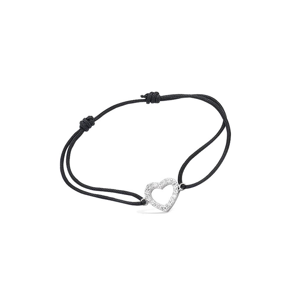 Bracelet en argent 925/000 rhodié, oxyde de zirconium et coton.