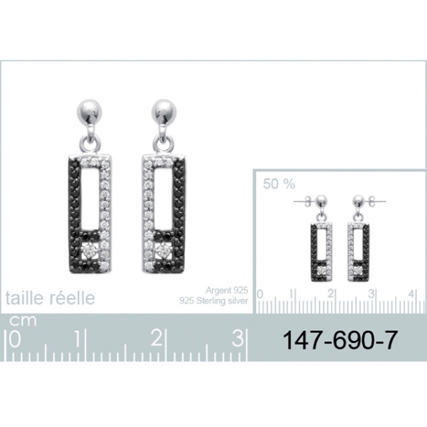 Boucles d'oreilles en argent 925/000 rhodié, oxyde de zirconium et pierres synthétiques.