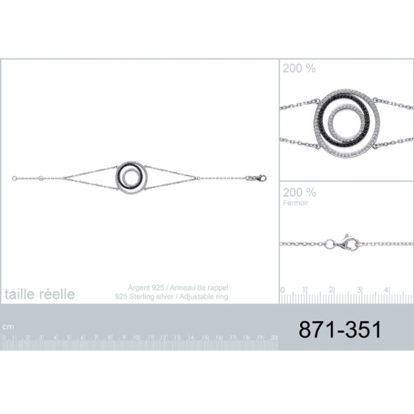 Bracelet en argent 925/000 rhodié, oxyde de zirconium et pierres synthétiques.