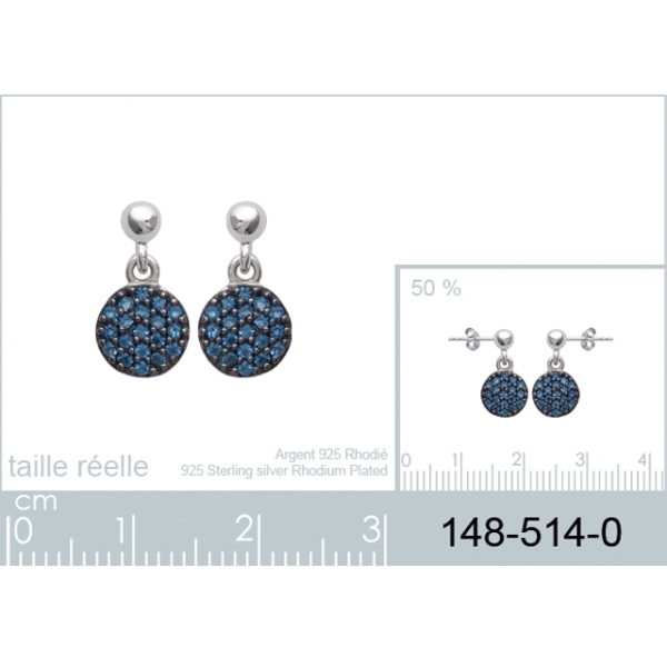 Boucles d'oreilles en argent 925/000 rhodié et pierres synthétiques bleues. Rond  Adulte Femme Indémodable
