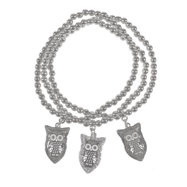 Lot de 3 bracelets fantaisie en métal argenté, plastique et verre.