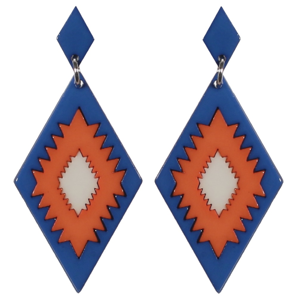 Boucles d'oreilles fantaisie en métal argenté et plastique.