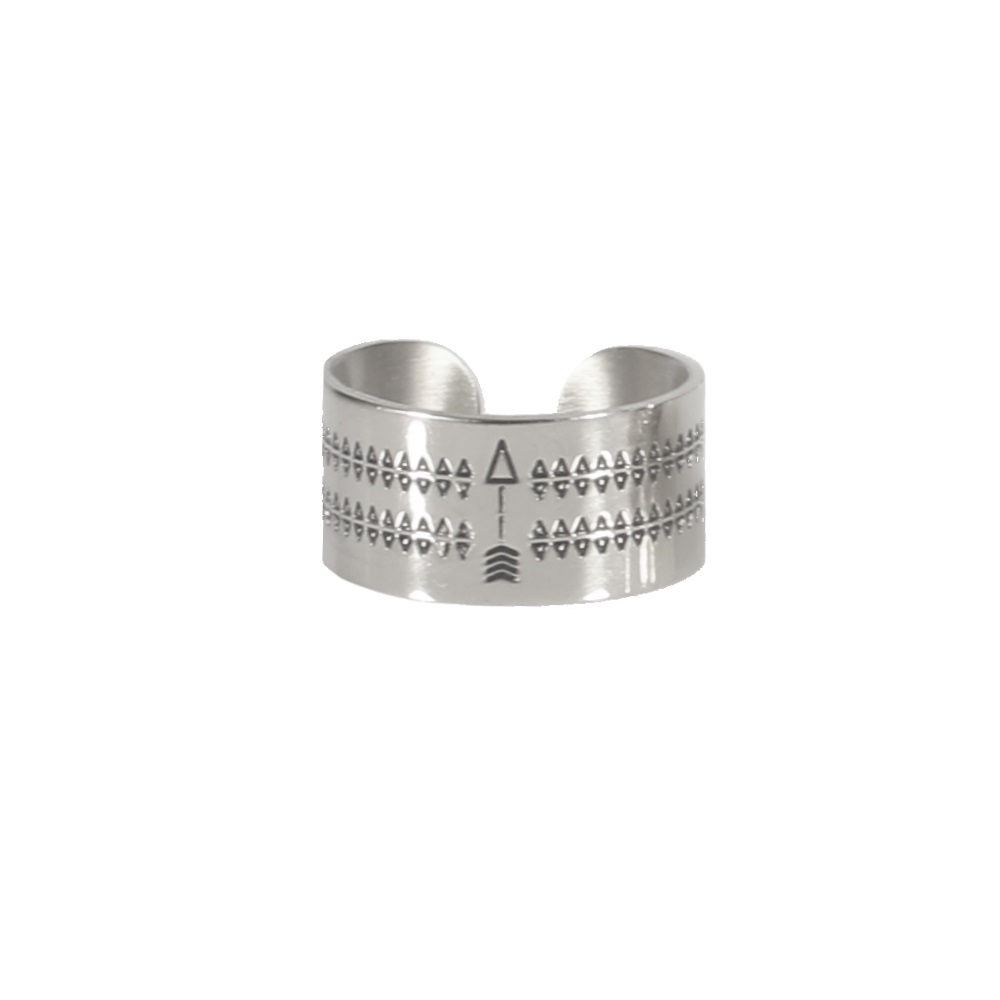 Description Bague avec gravures Indian spirit en acier argenté. Taille ajustable. Cliquez sur une matière, un thème, une couleur ou une collection pour voir tous les articles associés.