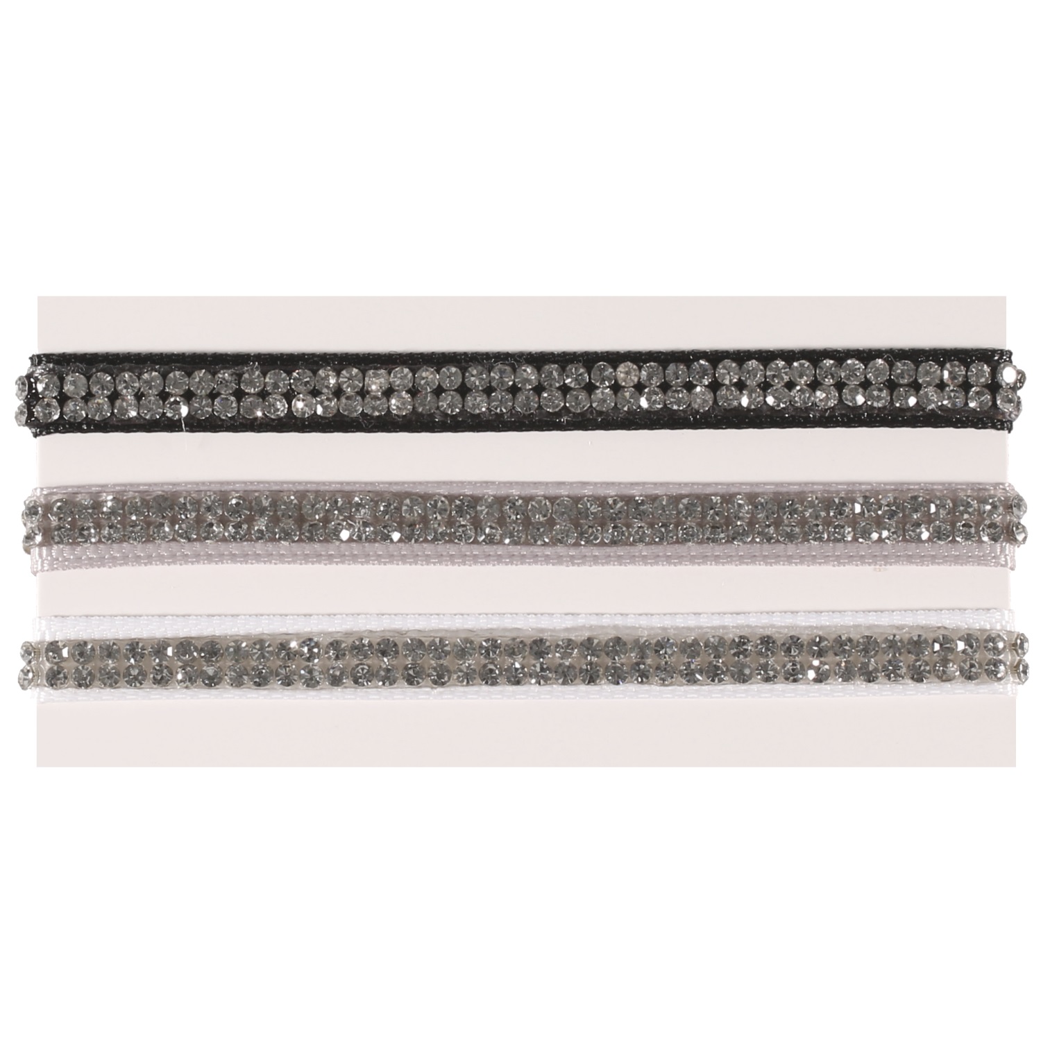 Lot de 3 bracelets fantaisie en textile et strass en cristaux synthétiques.