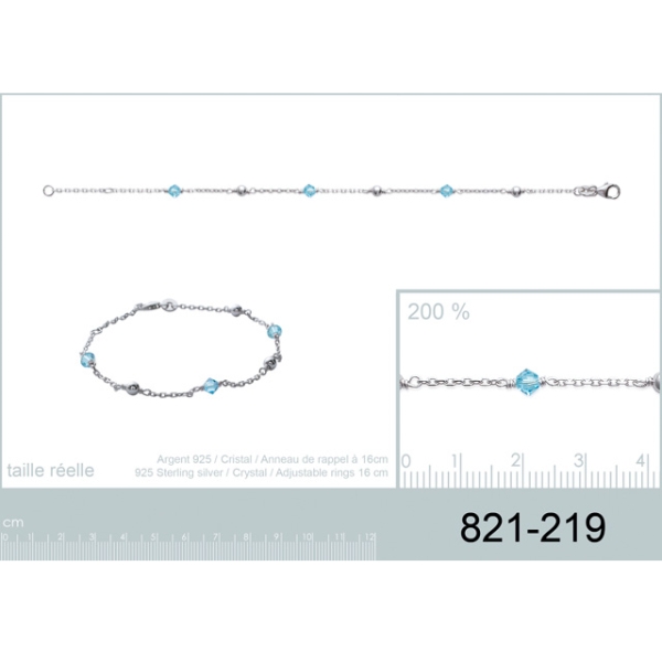Bracelet en argent 925/000 rhodié et cristal.