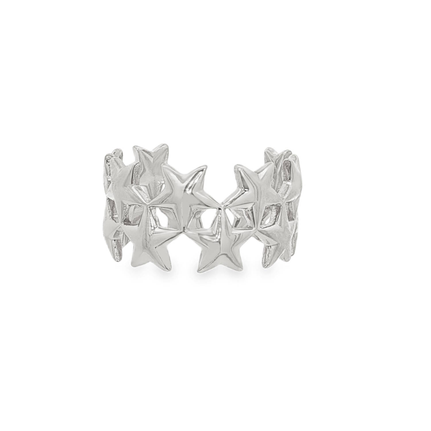 Description Bague bandeau d'une élégance intemporelle, confectionnée en acier argenté. Ce bijou se distingue par son design minimaliste et sa structure d'étoiles en série. Taille ajustable. Largeur 10 mm Matière(s) Acier . L'acier utilisé dans la bijouterie existe sous plusieurs qualités. Nous utilisons principalement la qualité 316L, qualité qui est utilisée en chirurgie. Cet acier est donc inoxydable et reste très résistant. Fermoir Aucun Couleur(s) dominante(s) Argenté Public Adolescent , Adulte . Genre Femme , Fille . Saison Indémodable . Thème(s) Nature . Cliquez sur une matière, un thème, une couleur ou une collection pour voir tous les articles associés.