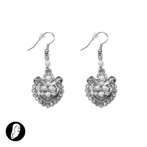 Boucles d'oreilles fantaisie en métal argenté et cristal.