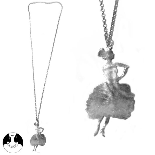 Collier sautoir fantaisie en métal argenté vieilli.