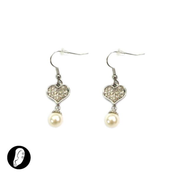 Description Boucles d'oreilles fantaisie en métal argenté et verre. Dormeuses. Coeurs. Cliquez sur une matière, un thème, une couleur ou une collection pour voir tous les articles associés.