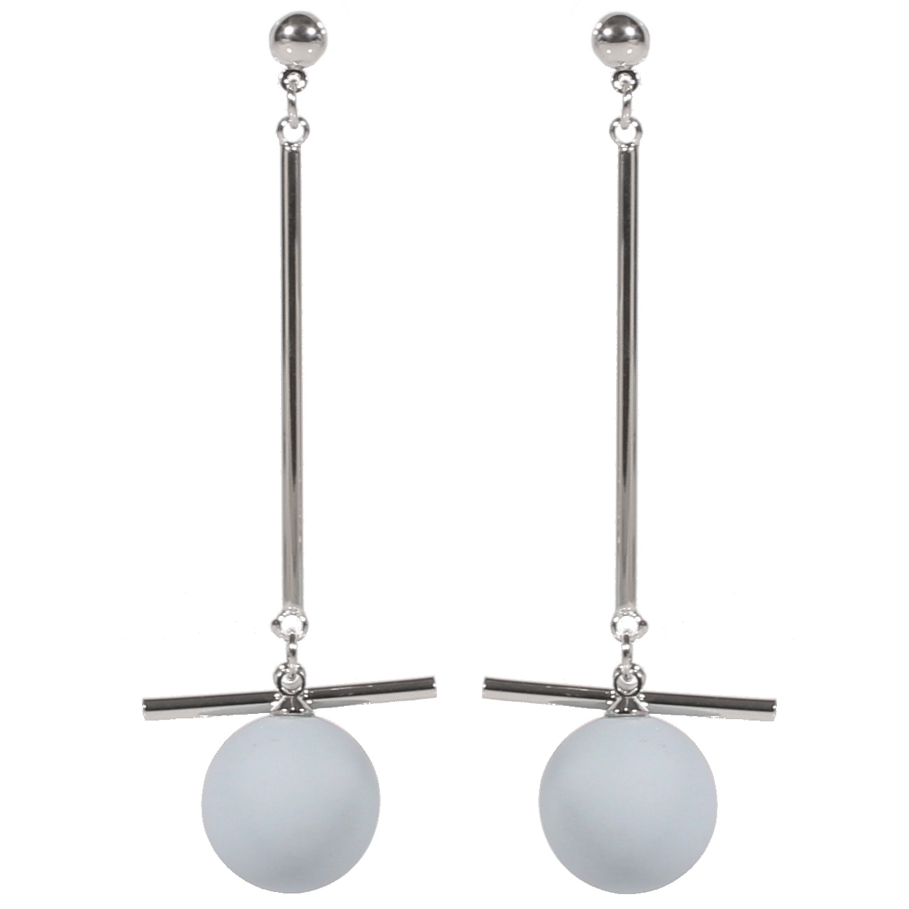 Boucles d'oreilles fantaisie en métal argenté et pierre synthétique. Boule Pendantes Perle  Adolescent Adulte Eté Femme Fille
