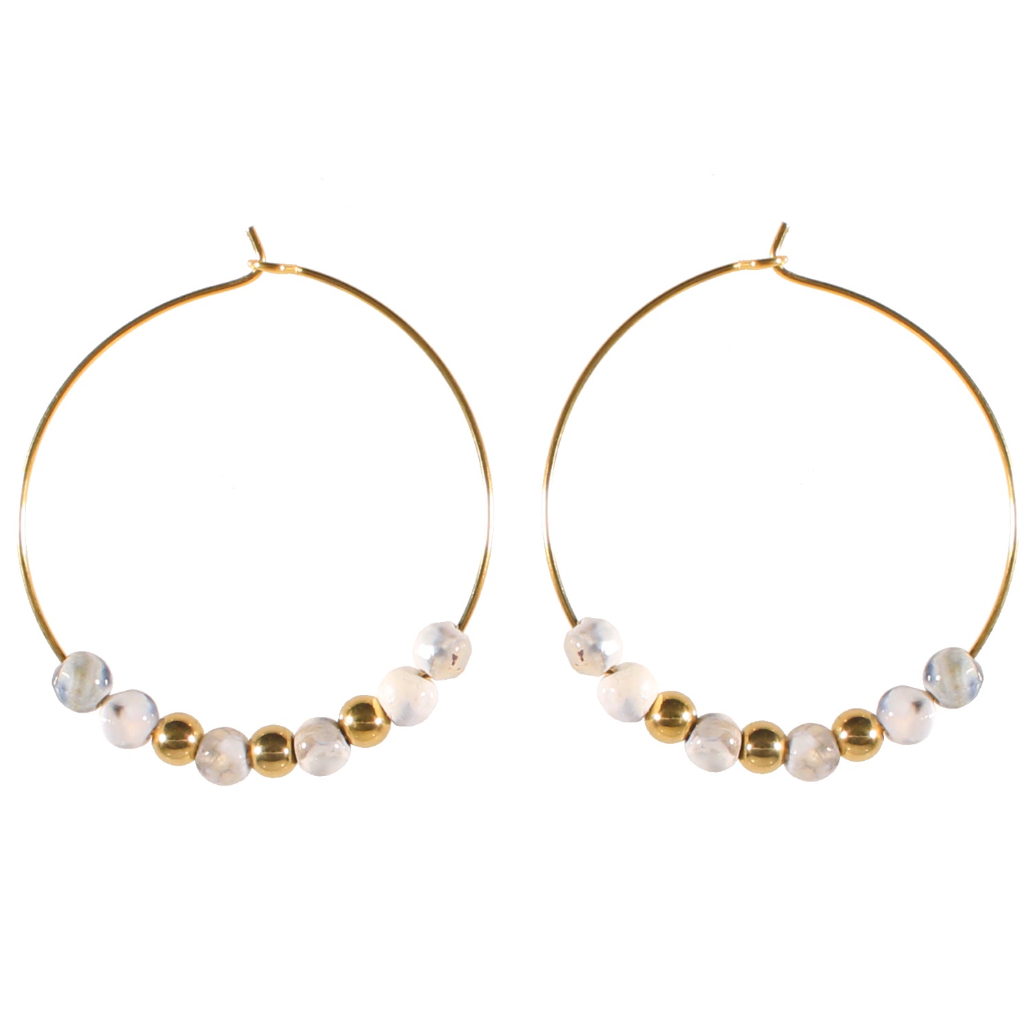 Boucles d'oreilles créoles avec perles en acier doré et perles en véritable pierre d'agate.