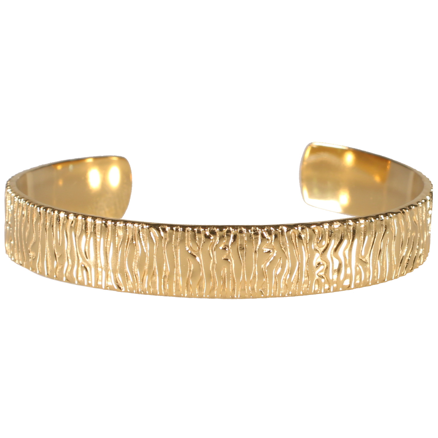 Description Bracelet jonc ouvert aux motifs martelés en acier doré. Largeur 10 mm Diamètre 58 mm [Guide des tailles] Matière(s) Acier . L'acier utilisé dans la bijouterie existe sous plusieurs qualités. Nous utilisons principalement la qualité 316L, qualité qui est utilisée en chirurgie. Cet acier est donc inoxydable et reste très résistant. Fermoir Autre Couleur(s) dominante(s) Doré Public Adolescent , Adulte . Genre Femme , Fille . Saison Indémodable . Collection Reflets Cliquez sur une matière, un thème, une couleur ou une collection pour voir tous les articles associés.