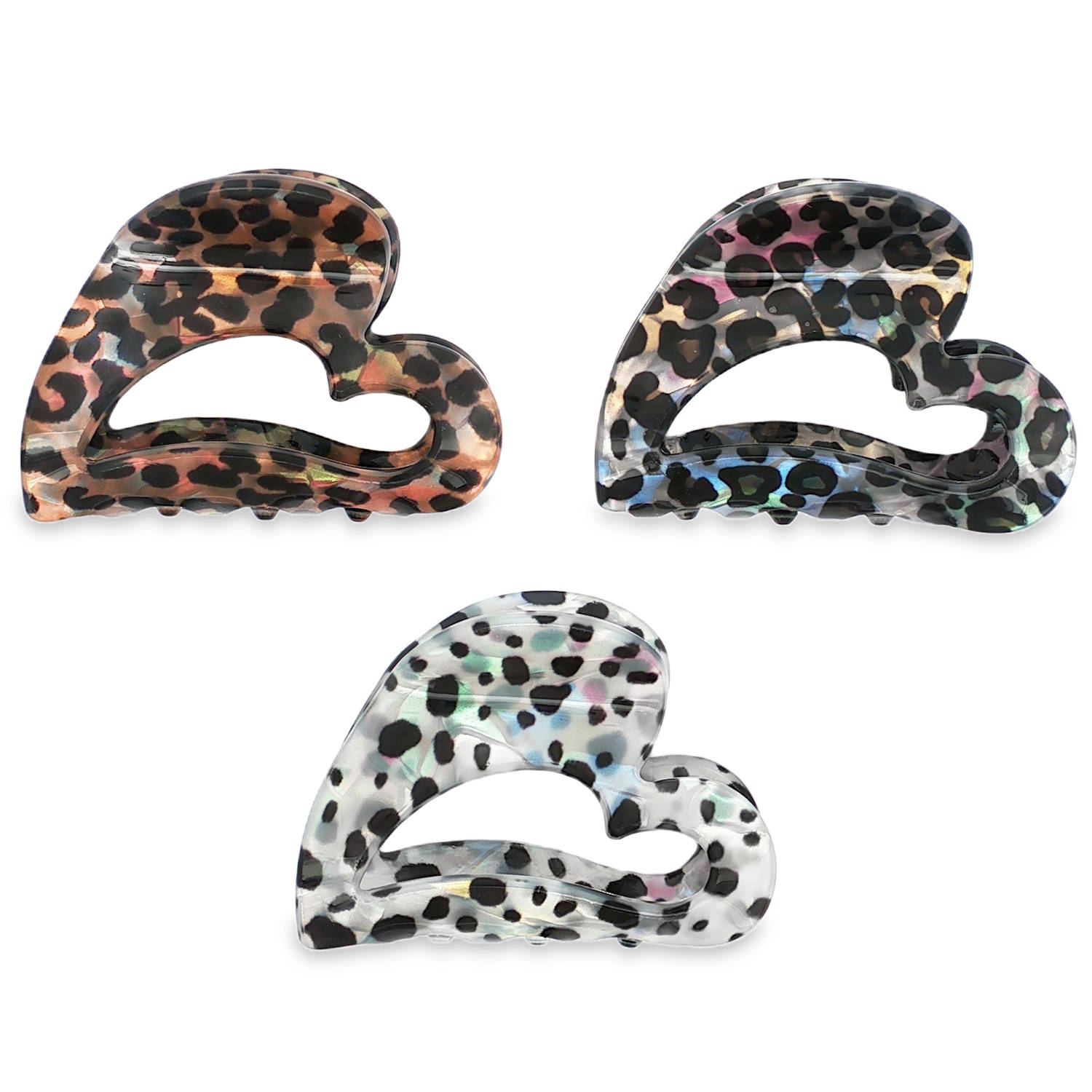 Description Cette pince à cheveux en forme de cœur arbore un motif léopard audacieux, fusionnant un design romantique avec un style sauvage. Un accessoire de coiffure original pour celles qui osent affirmer leur personnalité. 3 coloris différents. Vendu à l'unité. Votre préférence en commentaire. Cliquez sur une matière, un thème, une couleur ou une collection pour voir tous les articles associés.