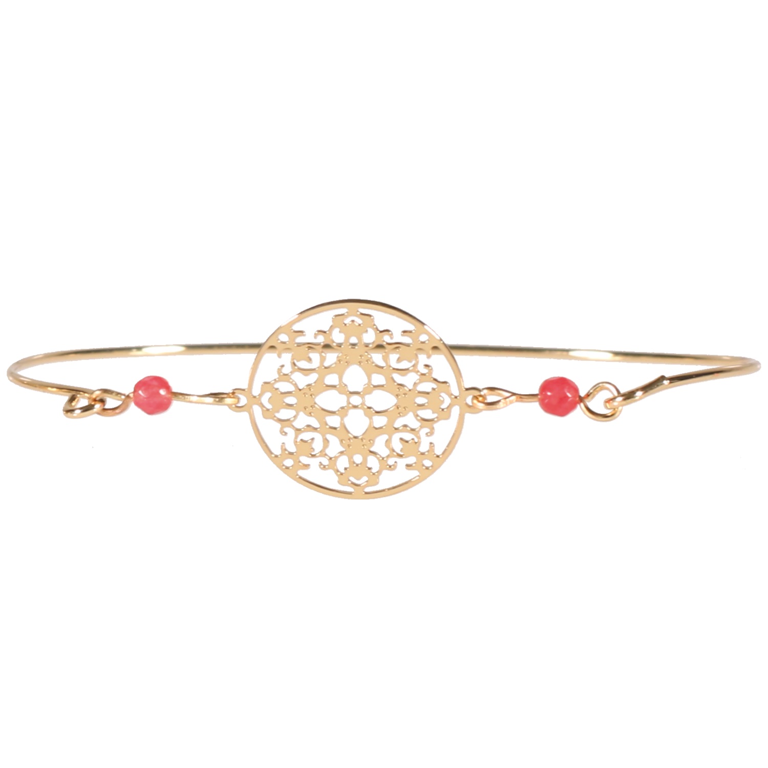 Bracelet jonc fantaisie en métal doré et cristaux de couleur.