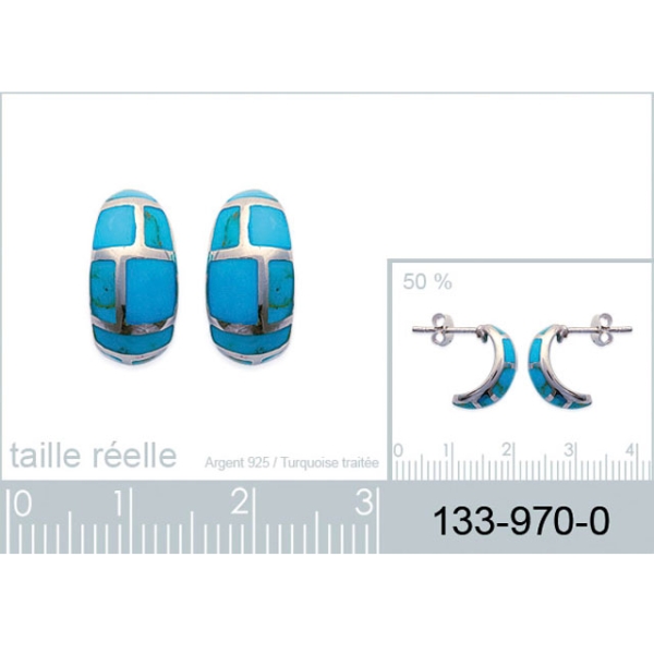 Boucles d'oreilles en argent 925/000 et turquoise traitée.