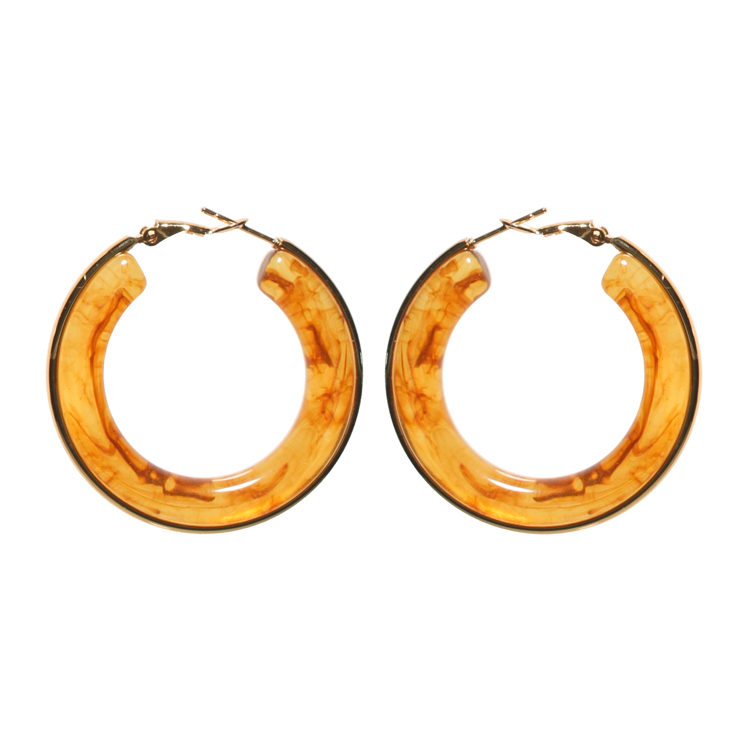 Description Boucles d'oreilles créoles en acier doré et de couleur marron ambré. Cliquez sur une matière, un thème, une couleur ou une collection pour voir tous les articles associés.