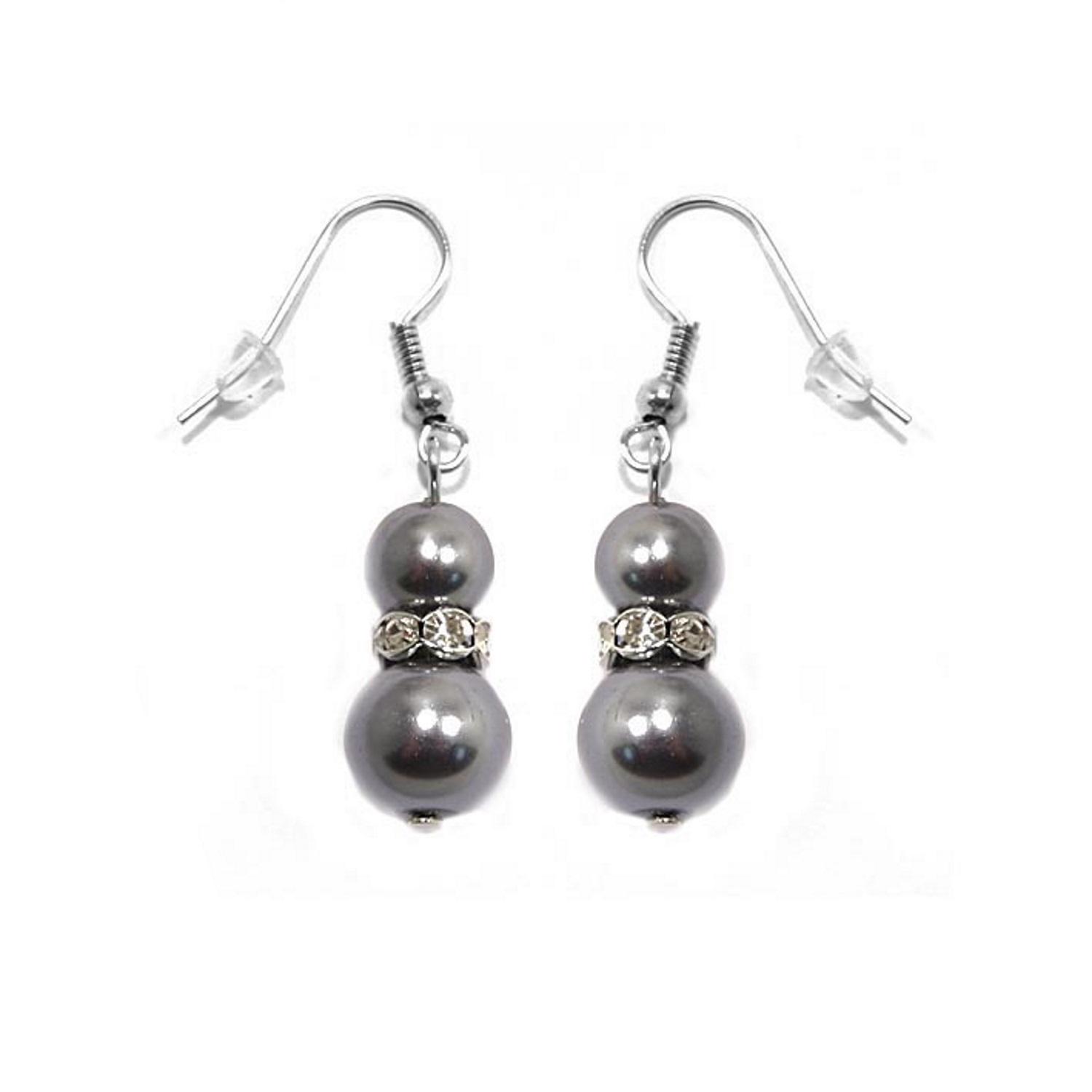 Description Boucles d'oreilles fantaisie en métal argenté et verre gris. Cliquez sur une matière, un thème, une couleur ou une collection pour voir tous les articles associés.