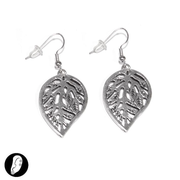 Boucles d'oreilles fantaisie en métal argenté vieilli.