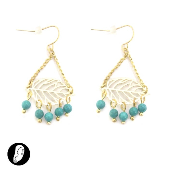 Boucles d'oreilles fantaisie en métal doré et pierres naturelles.