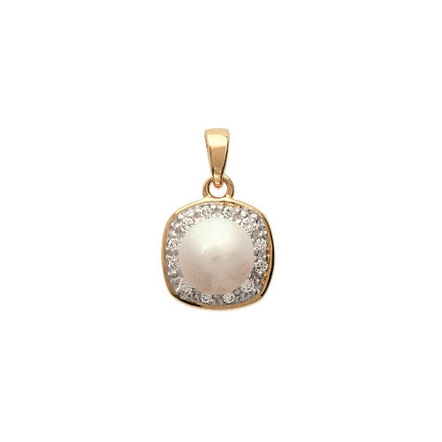 Pendentif en plaqué or, oxyde de zirconium et perle d'eau douce.