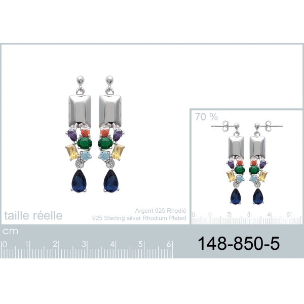 Boucles d'oreilles en argent 925/000 rhodié et pierres synthétiques.