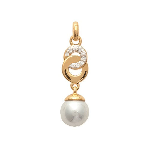 Pendentif en plaqué or, oxyde de zirconium et perle d'imitation.