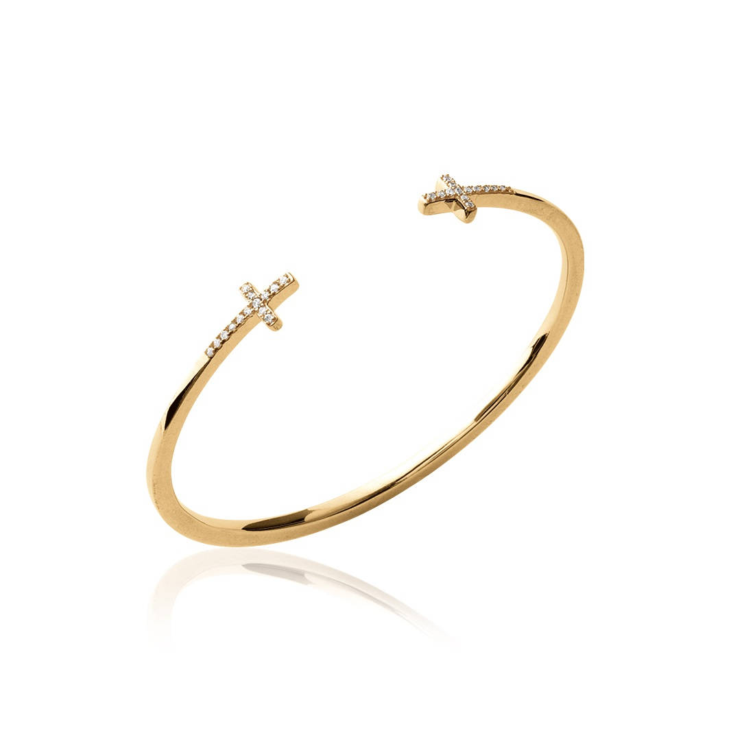 Bracelet jonc rigide en plaqué or et oxyde de zirconium.