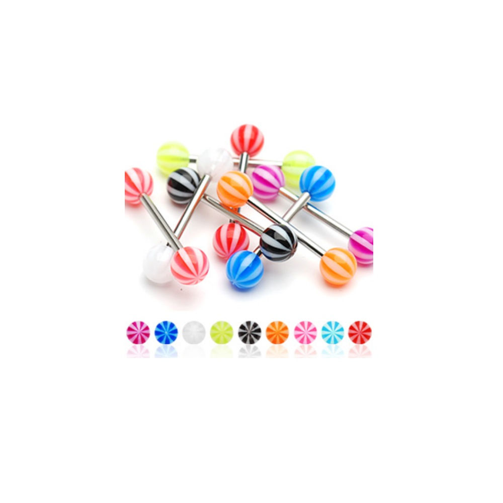 Piercing haltères en acier chirurgical 316L et acrylique colorée.