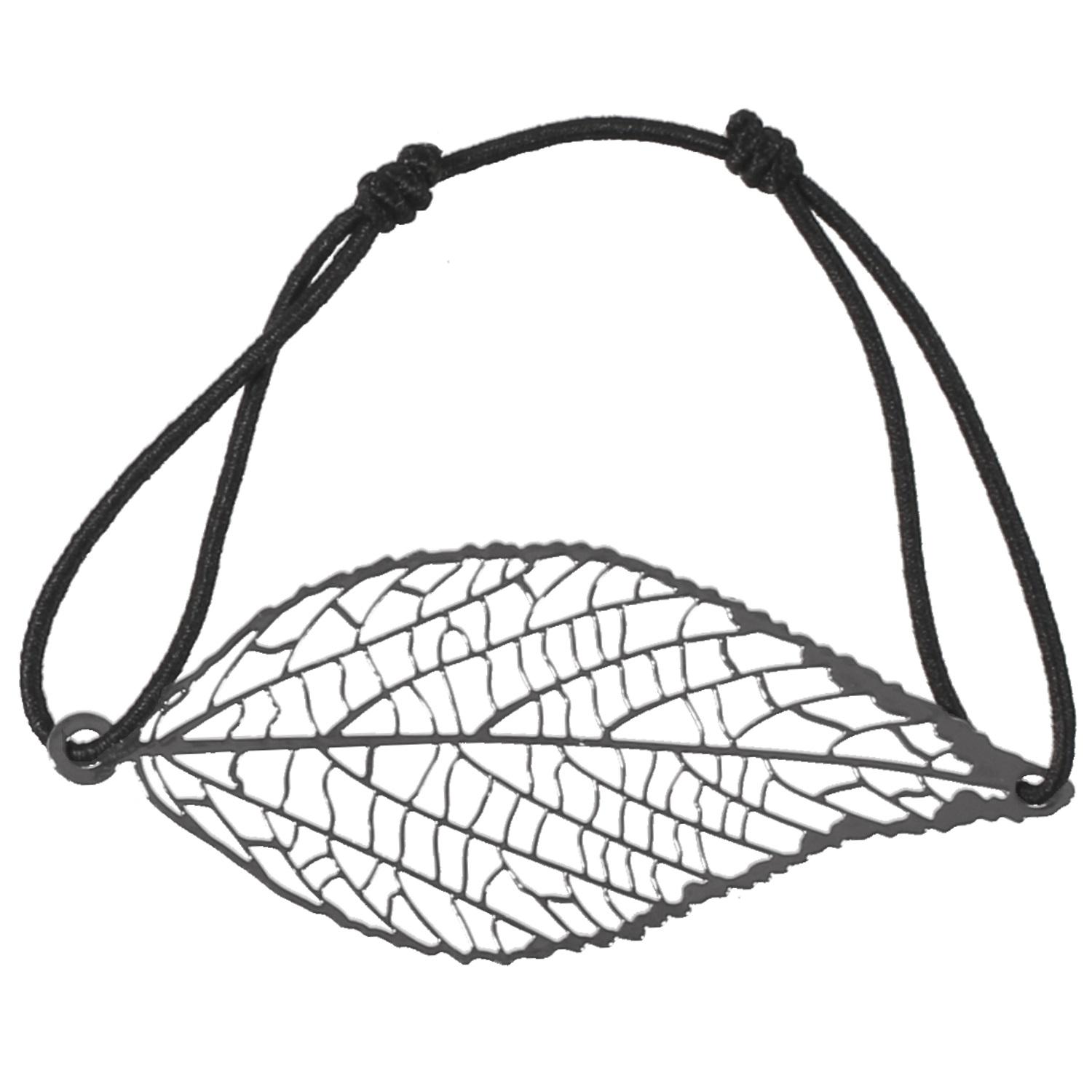 Bracelet fantaisie en métal argenté et textile. Elastique Feuille  Adolescent Adulte Femme Fille Indémodable Nature