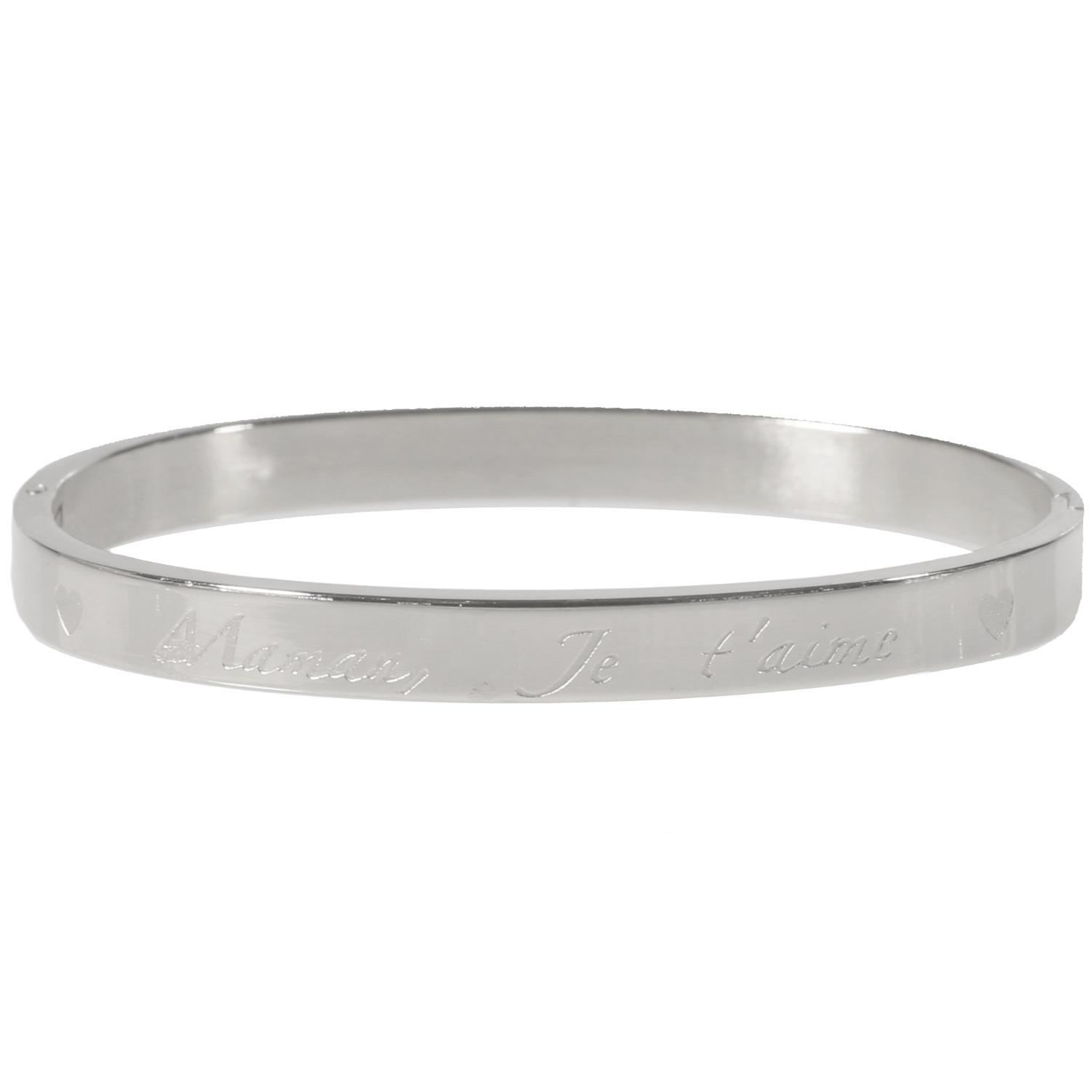Description Bracelet jonc rigide en acier argenté. Largeur 6 cm Diamètre 59 mm [Guide des tailles] Matière(s) Acier . L'acier utilisé dans la bijouterie existe sous plusieurs qualités. Nous utilisons principalement la qualité 316L, qualité qui est utilisée en chirurgie. Cet acier est donc inoxydable et reste très résistant. Fermoir Charnière À noter "Maman, Je t'aime" Couleur(s) dominante(s) Argenté Public Adulte . Genre Femme . Saison Indémodable . Thème(s) Amour , Message . Collection Fête des mères Cliquez sur une matière, un thème, une couleur ou une collection pour voir tous les articles associés.