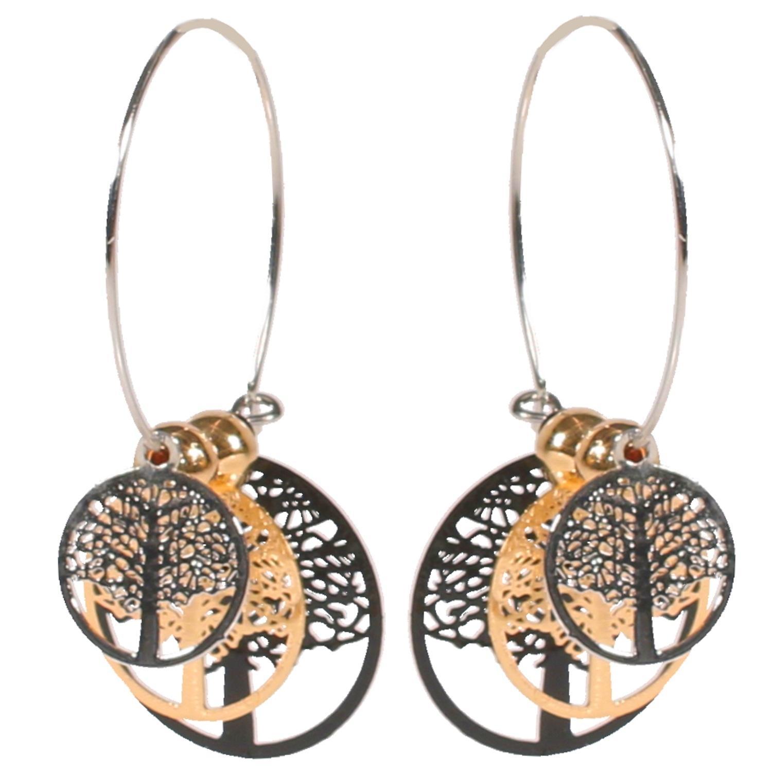 Boucles d'oreilles fantaisie en métal doré, métal argenté et métal peint. Arbre Pendantes Rond  Adolescent Adulte Femme Fille Indémodable Nature