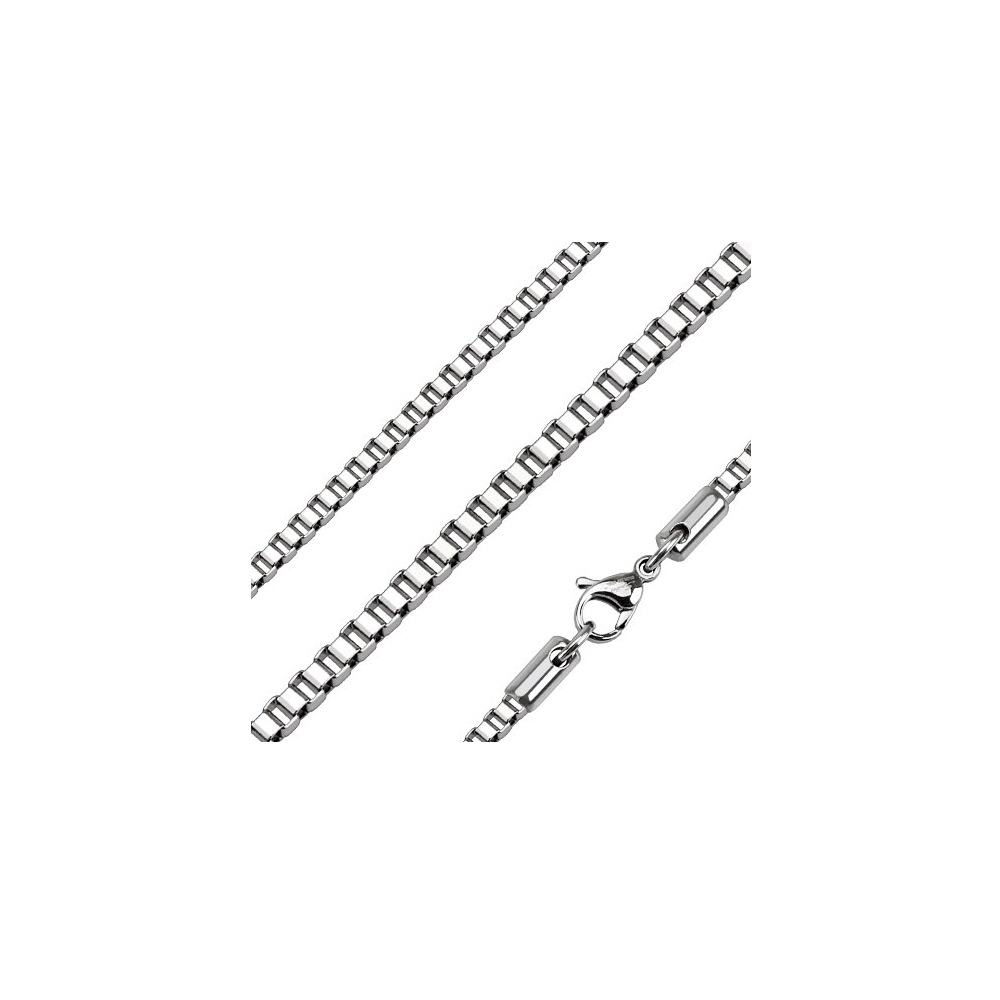 Description Chaîne en acier. Longueur 55 cm [Guide des tailles] Largeur 1.5 mm Maille Vénitienne Matière(s) Acier . L'acier utilisé dans la bijouterie existe sous plusieurs qualités. Nous utilisons principalement la qualité 316L, qualité qui est utilisée en chirurgie. Cet acier est donc inoxydable et reste très résistant. Fermoir Mousqueton Couleur(s) dominante(s) Argenté Public Adolescent , Adulte . Genre Femme , Fille . Saison Indémodable . Cliquez sur une matière, un thème, une couleur ou une collection pour voir tous les articles associés.