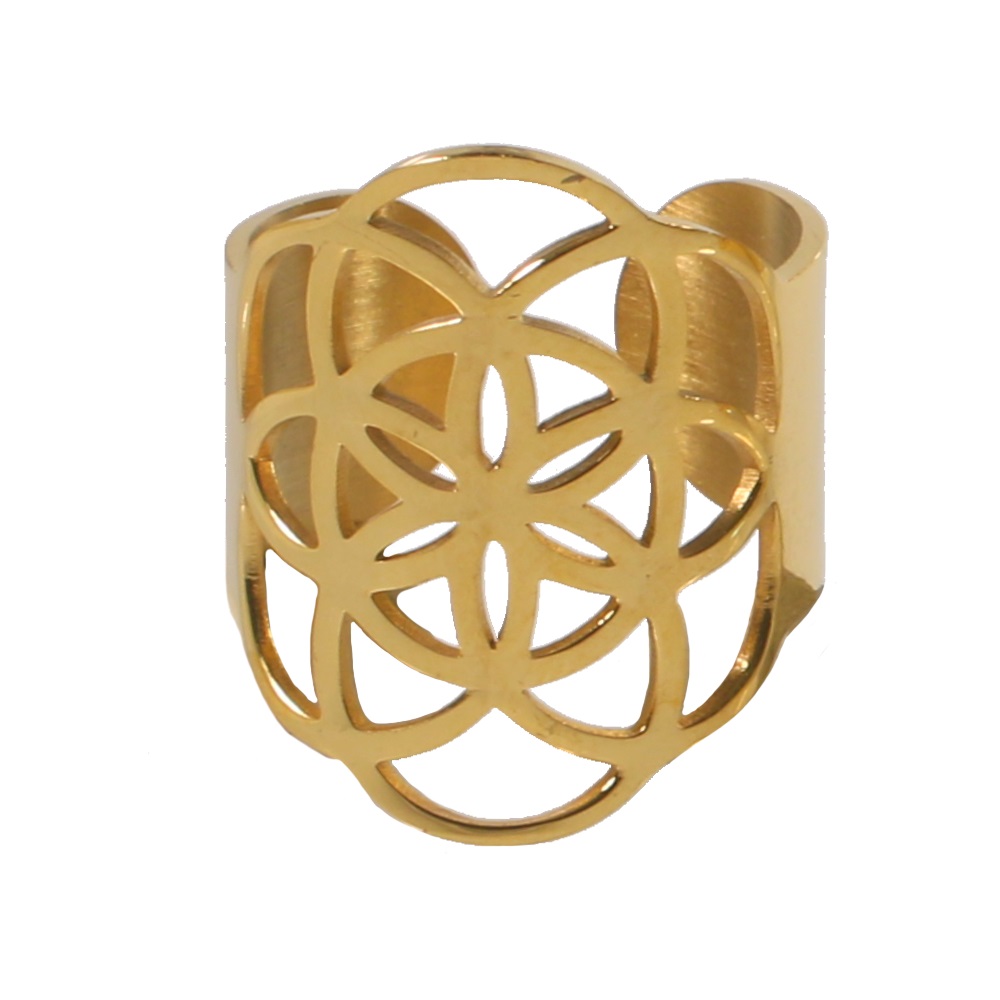 Description Bague ajustable en acier doré. Largeur 24 mm Matière(s) Acier . L'acier utilisé dans la bijouterie existe sous plusieurs qualités. Nous utilisons principalement la qualité 316L, qualité qui est utilisée en chirurgie. Cet acier est donc inoxydable et reste très résistant. Fermoir Aucun Couleur(s) dominante(s) Doré Public Adolescent , Adulte . Genre Femme , Fille . Saison Indémodable . Thème(s) Fleurs . Cliquez sur une matière, un thème, une couleur ou une collection pour voir tous les articles associés.