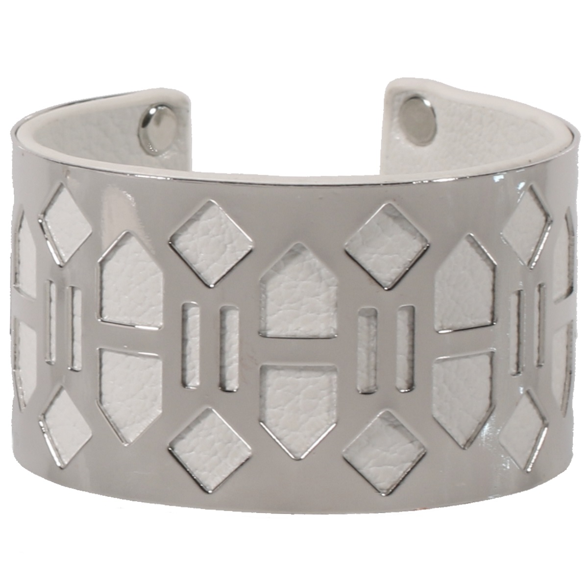 Description Bracelet manchette en acier et cuir. Cliquez sur une matière, un thème, une couleur ou une collection pour voir tous les articles associés.