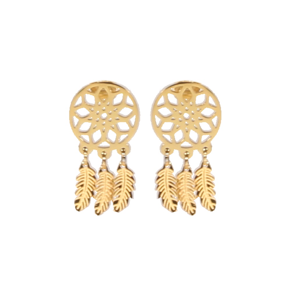 Description Boucles d'oreilles Attrape-rêve en acier. Largeur 11 mm Hauteur 20 mm Matière(s) Acier . L'acier utilisé dans la bijouterie existe sous plusieurs qualités. Nous utilisons principalement la qualité 316L, qualité qui est utilisée en chirurgie. Cet acier est donc inoxydable et reste très résistant. Fermoir Tiges poussettes Couleur(s) dominante(s) Doré Public Adolescent , Adulte . Genre Femme , Fille . Saison Indémodable . Thème(s) Symboles . Cliquez sur une matière, un thème, une couleur ou une collection pour voir tous les articles associés.