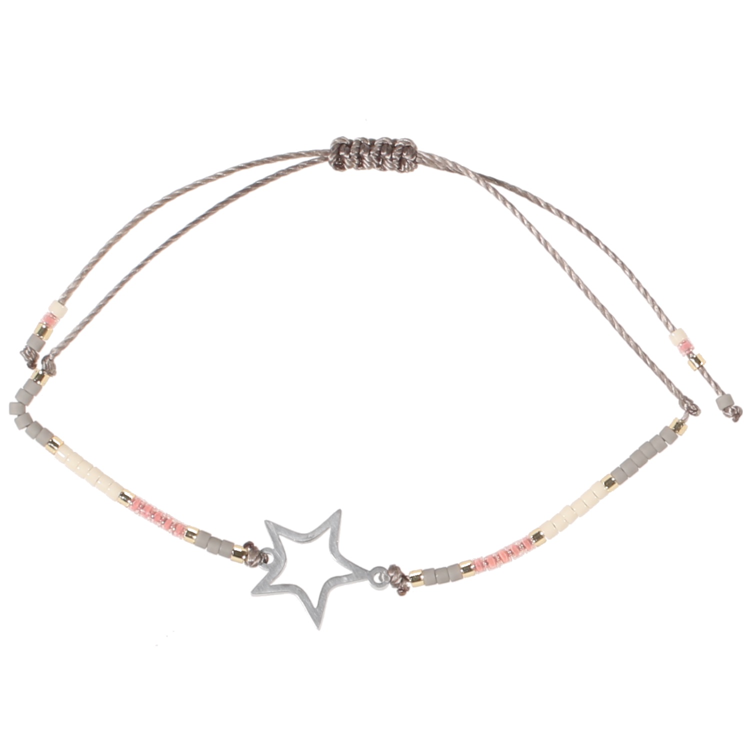 Bracelet Etoile en acier, pierres synthétiques et textile.