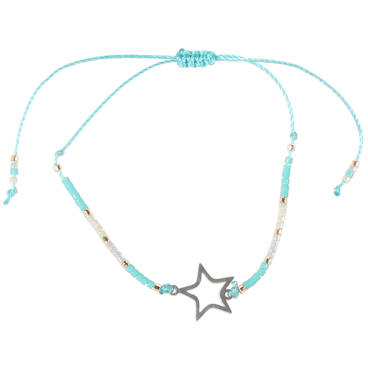Bracelet Etoile en acier, pierres synthétiques et textile.