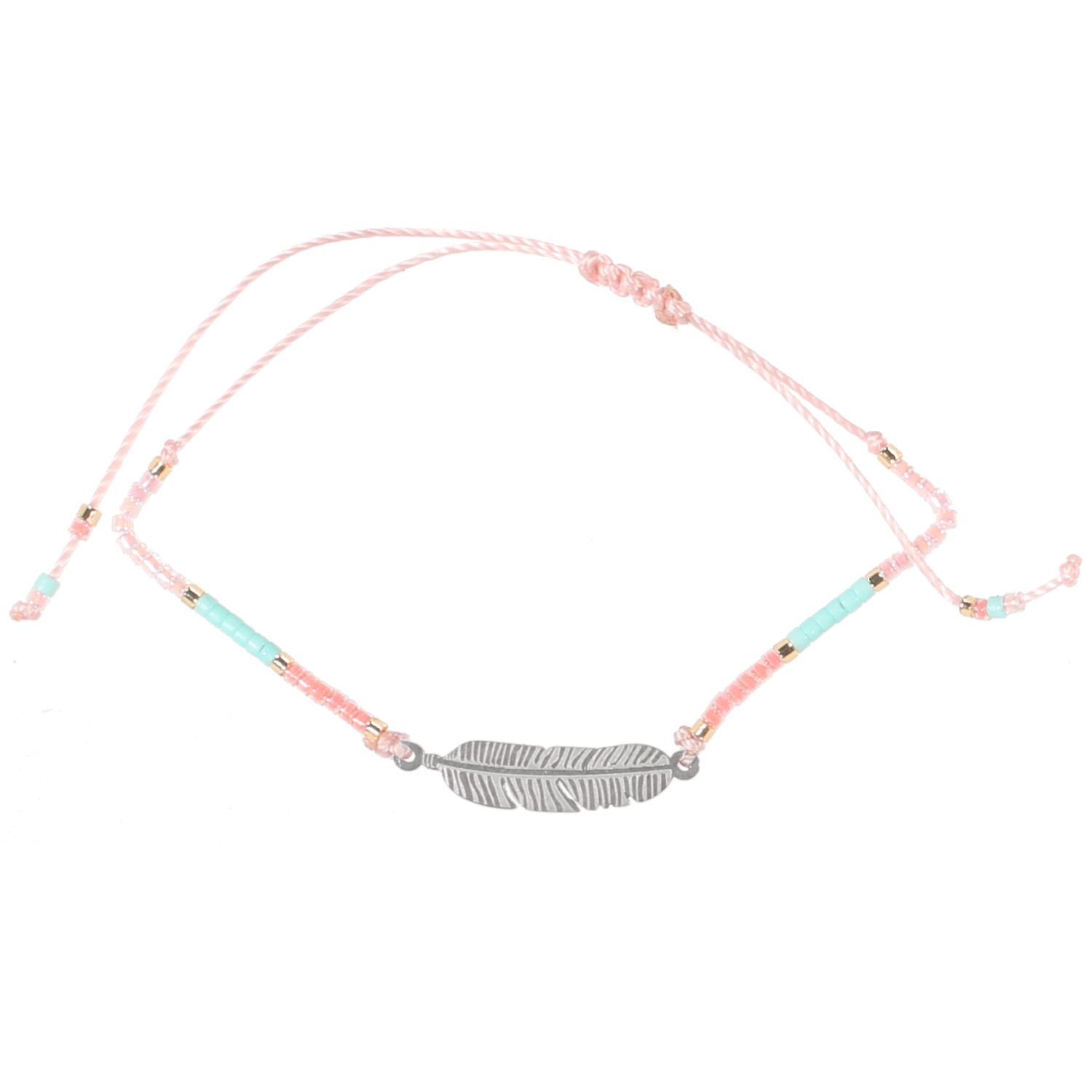 Bracelet Plume en acier, pierres synthétiques et textile.