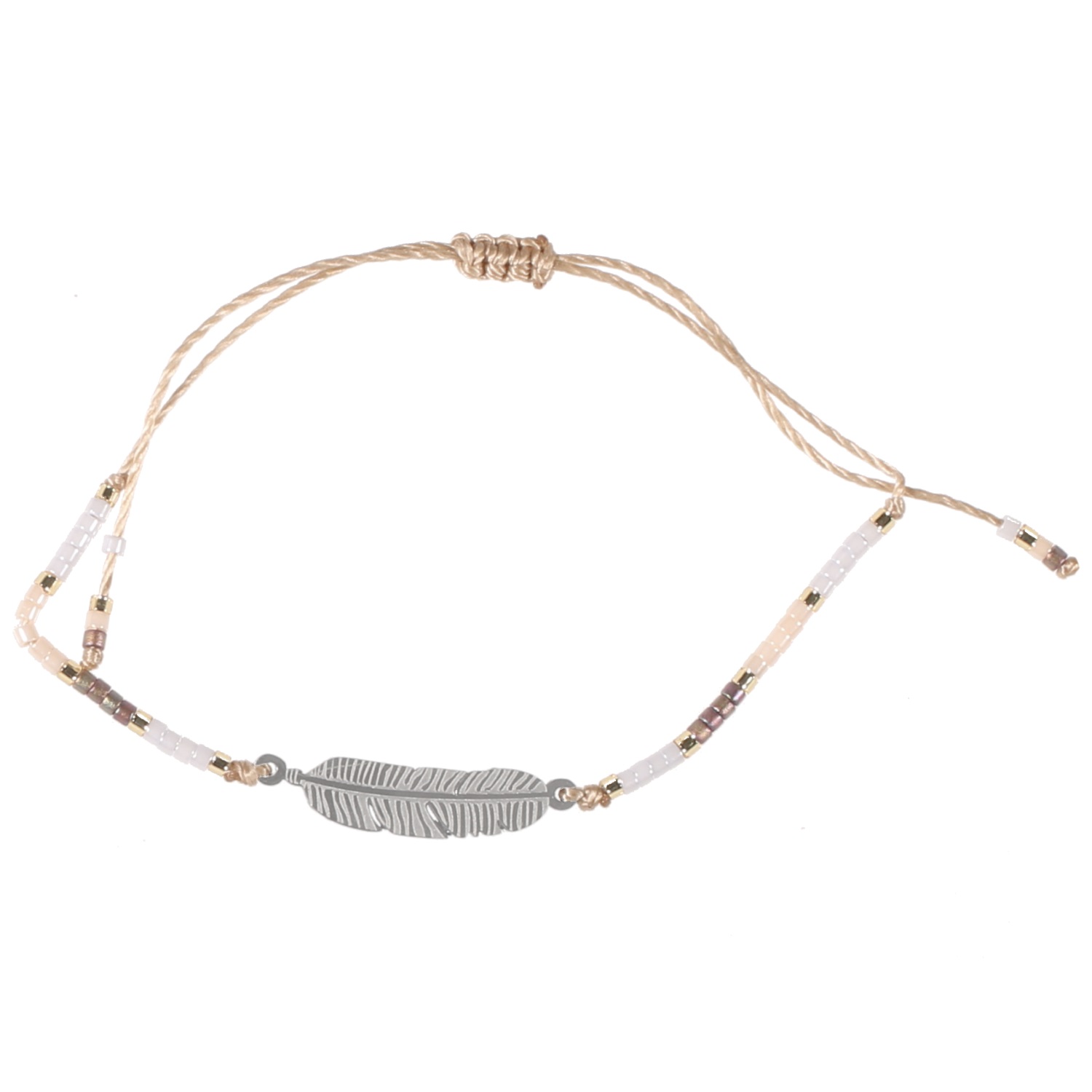 Bracelet Plume en acier, pierres synthétiques et textile.