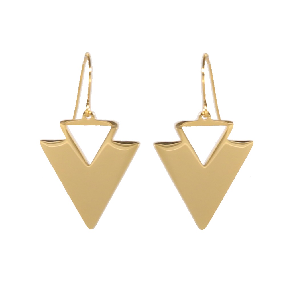 Description Boucles d'oreilles pendantes Triangle en acier doré. Largeur 21 mm Hauteur 36 mm Matière(s) Acier . L'acier utilisé dans la bijouterie existe sous plusieurs qualités. Nous utilisons principalement la qualité 316L, qualité qui est utilisée en chirurgie. Cet acier est donc inoxydable et reste très résistant. Fermoir Crochets Couleur(s) dominante(s) Doré Public Adolescent , Adulte . Genre Femme , Fille . Saison Indémodable . Cliquez sur une matière, un thème, une couleur ou une collection pour voir tous les articles associés.