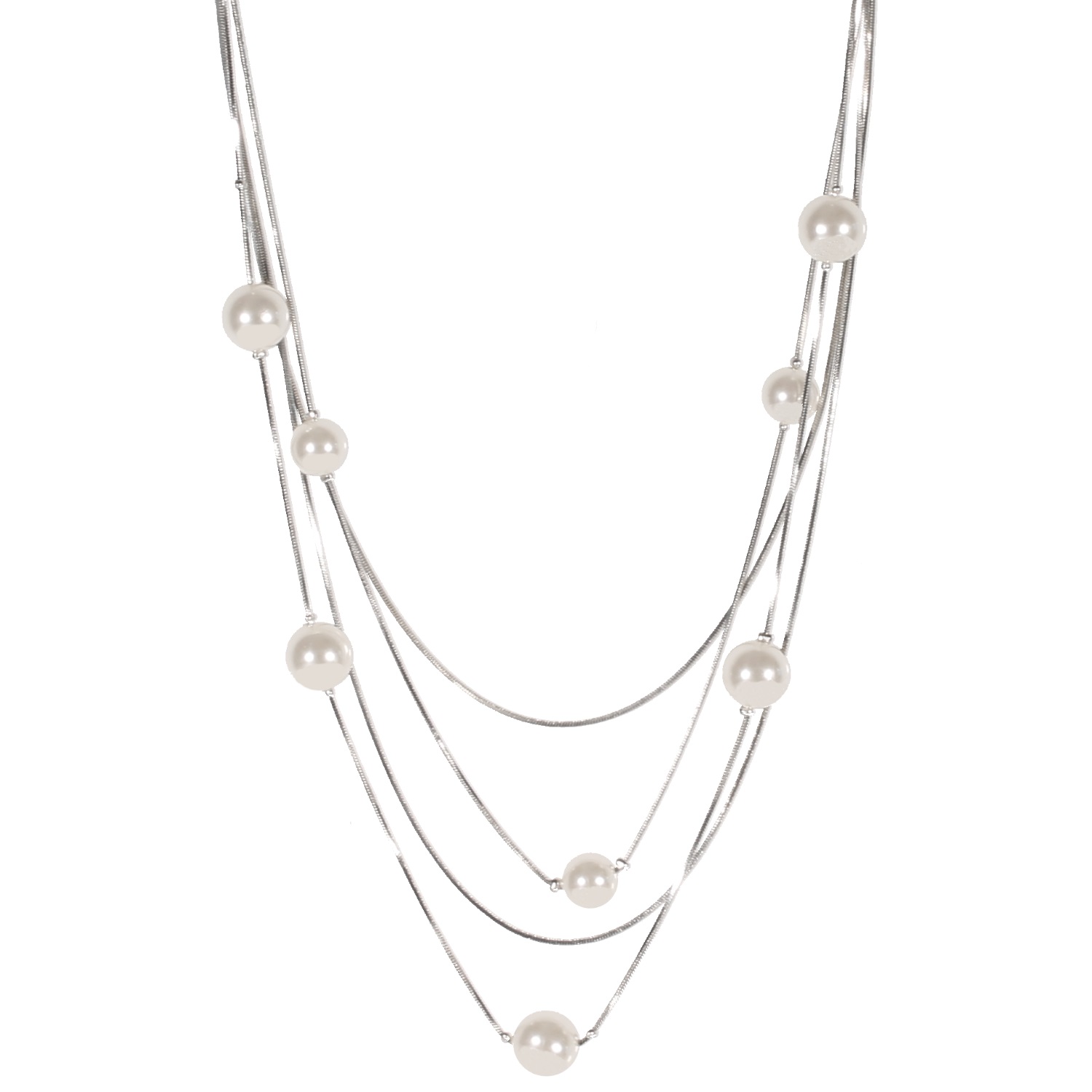 Description Collier fantaisie multi rangs en métal argenté et perles synthétiques. 4 rangs. Cliquez sur une matière, un thème, une couleur ou une collection pour voir tous les articles associés.