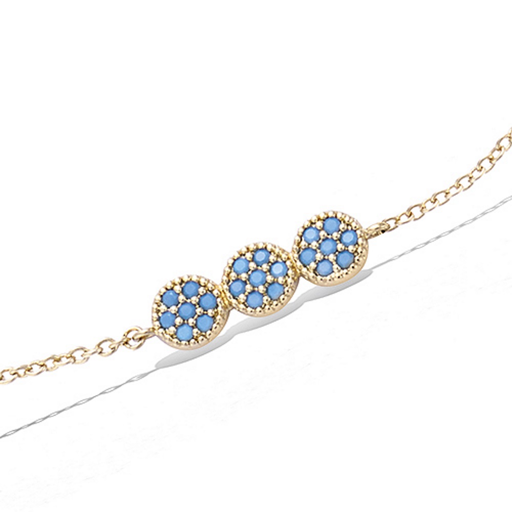 Bracelet en plaqué or et trois pastilles en pierres d'imitation turquoise.